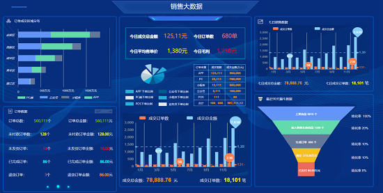 經營大數據、銷售大數據、商品大數據、客戶大數據、營銷大數據,通過可視化看板實時呈現,經營狀況一目了然