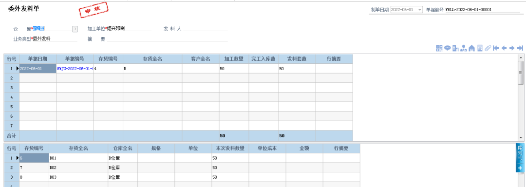 通過(guò)管家婆工貿(mào)ERP的委外加工管理,炬興印刷可以做委外加工任務(wù)單,當(dāng)發(fā)料時(shí),先在對(duì)應(yīng)委外任務(wù)單進(jìn)行發(fā)料;當(dāng)委外回來(lái)之后,選擇對(duì)應(yīng)委外任務(wù)單生成委外完工驗(yàn)收單,一個(gè)委外任務(wù)單貫穿整個(gè)委外任務(wù)。同時(shí),通過(guò)委外材料分布表也可看出有多少材料還在外面,分別在哪個(gè)委外商那里。