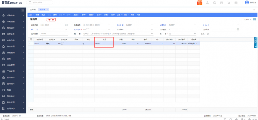 針對(duì)椰子原材料的采購(gòu)成本經(jīng)常變動(dòng)的問(wèn)題,財(cái)貿(mào)ERP可以通過(guò)使用批號(hào)管理,有效管理到每一批次的成本,這樣,即便采購(gòu)價(jià)格波動(dòng)較大,也能保證毛利計(jì)算的精準(zhǔn)。