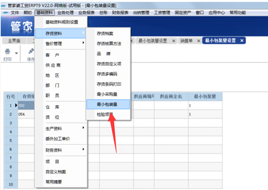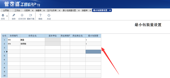 在基礎資料—存貨資料—最小包裝量這里設置好材料的最小包裝量。