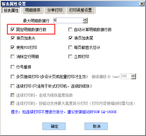 圖片中所示的最大明細(xì)行具體錄入多少,需要根據(jù)客戶實(shí)際的紙張大小來決定。通過判斷一張大概能打印多少數(shù)據(jù)去調(diào)整到最佳的行數(shù)即可。
