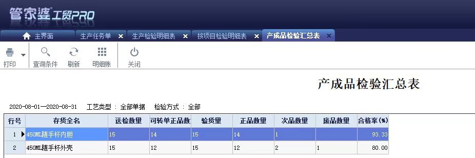 ? 生產(chǎn)檢驗明細表:主要查看生產(chǎn)檢驗的明細情況;